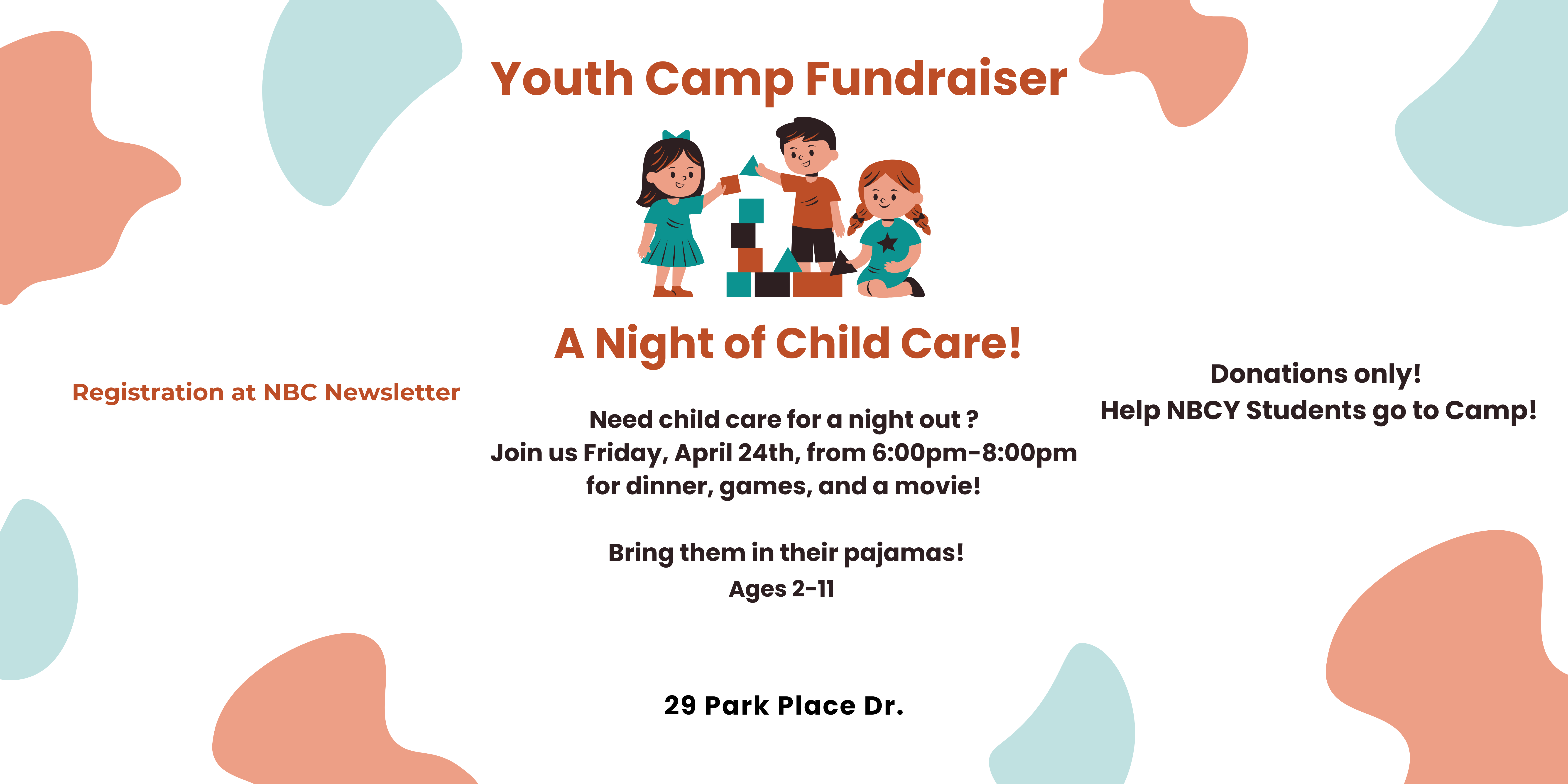 NBC Families! Enjoy a night out while we take care of the kiddos! Drop your little ones off for a fun-filled evening of dinner, games, and a movie! Come dressed in your favorite pajamas!